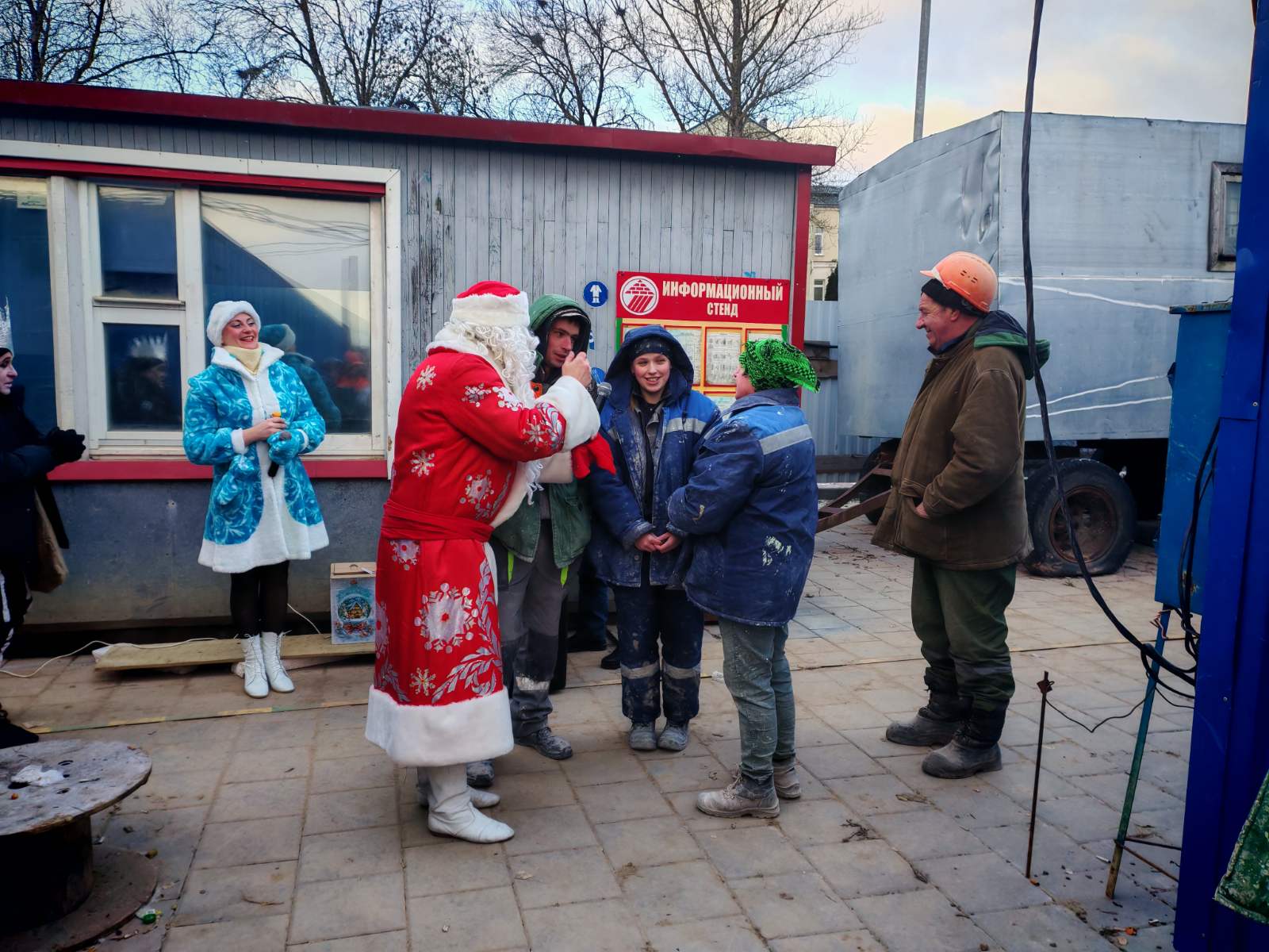 Вдали от городского шума, среди заснеженного леса и рабочих бытовок, сотрудники строительной организации устроили настоящий новогодний праздник. Несмотря на мороз и рабочую форму, на площадке царила атмосфера тепла и веселья: Дед Мороз, Снегурочка и другие сказочные персонажи поздравили трудовой коллектив, подарили подарки и зарядили всех праздничным настроением.